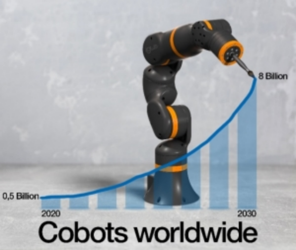 全球机器人市场持续发展。到2030年,仅协作机器人的市场规模预计就将达到80亿美元。igus的低成本机器人技术能帮助中小型企业轻松实现自动化应用。(来源:igus GmbH)