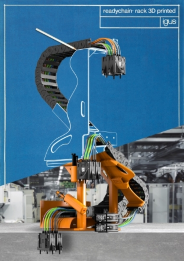 安装时间缩短66%,重量减轻80%:igus推出首款3D打印装配拖链支架,产品快速可得,且完全根据客户要求进行设计。(来源:igus GmbH) |