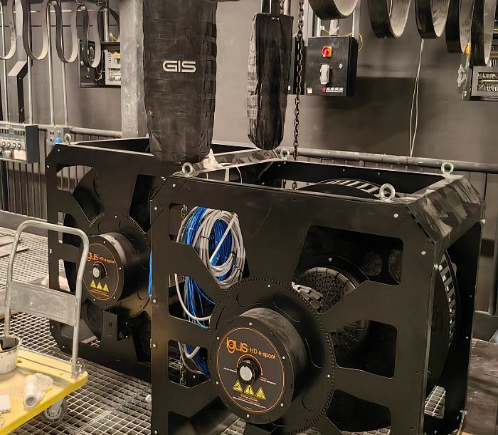 大丰选择在格栅上排布多台e-spool无滑环的电缆卷轴来实现灵活且可靠的动力和信号的传输,其升降速度可达1.5m/s。区别于市面上常见的传统卷筒,e-spool不仅有多种尺寸可选,可以在一个卷轴中排布不同类型的电缆,并且运行平稳、低噪音。它的结构非常紧凑,可以使用在狭小空间内,因此在舞台应用领域广受好评。这个舞台应用也获得了2024年vector中国赛区的铜奖。