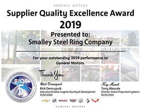 伊利诺伊州苏黎世湖,2021年 1月13日-Smalley被授予2019年度通用汽车供应商杰出质量奖,这是本公司连续第八年获得这一殊荣。 通用汽车公司与全球成千上万家供应商合作,仅有少数供应商获得该奖项。 “供应商杰出质量奖”适用于达到或超过13个特定要求(包括零产品缺陷和按时交货)的专有严格质量审核高级供应商。 Smalley质量工程总监Jamie Madison表示:“我们对质量,客户服务和工程做出的卓越承诺而获得认可是一项惊人的荣誉。“ 我们精益求精的努力是成为通用汽车和全球汽车行业值得信赖的合作伙伴的原因,连续八年赢得这一殊荣充分肯定了我们作为行业先锋所做出的努力和地位。”Smalley是一家致力于生产高质量产品的制造商。从转向系统到电动机,Smalley挡圈和波簧在汽车工业中已获得100多年的信赖。 Smalley的产品均按照ISO 9001,IATF 16949和ISO 14001进行制造。凭借在生产流程中屡获殊荣的快速检查流程,Smalley提供高质量产品。 ### Smalley 简介:作为边缘卷绕波簧的发明者,Smalley 拥有超过 100 年的卓越制造经验,是工程师的优选®,可为您的应用需求提供波簧、挡圈和等截面挡圈。Smalley 库存 10000 个标准零件,涵盖 30 种配置和 400 种尺寸。可样件或量产,我们的团队由行业专业工程师组成,无模具费™ 制造过程满足您的应用、预算和时间要求的设计灵活。所有产品制造均在位于美国总部的300000 英尺的工厂中进行,我们遍布全球办事处、工程师和分销合作伙伴网络可满足您从任何地方快速接收零件及技术支持。作为一家 ISO 9001 和 ISO 14001 公司,我们提供通过 IATF 16949、AS9100 和 ISO 13485 认证的优质产品。了解我司制造业新闻和产品更新,请在社交媒体上关注或访问我们的博客 https://www.smalley.cn/blog。