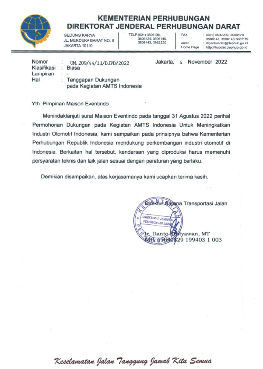 此次获得多家官方支持函,证明了AMTS 品牌在进入印尼市场之后,不仅得到了印尼当地官方部门、合作方及协会的高度肯定,更是认可AMTS Indonesia对推动当地汽车制造产业的积极作用。