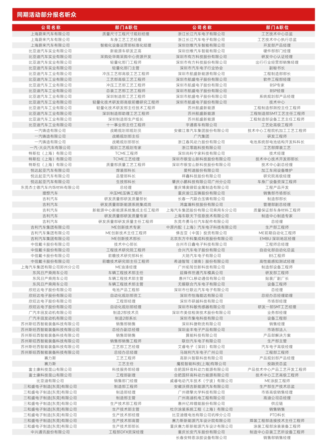 来自蔚来、奔驰、比亚迪、一汽、特斯拉、理想等头部企业的行业领军者都将到场,济济一堂,群贤毕集。旨在通过深入挖掘新能源三电与智造技术、汽车用胶涂胶趋势及智能检测技术、一体化压铸技术、汽车电子数智化技术的创新潜力与发展前景,为汽车工程及工业装配技术人员构筑一个全新的联接平台。