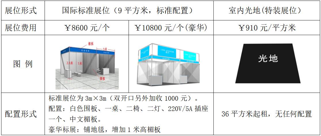 注1:免费及增值服务包括:会刊(免费刊登300字左右企业简介),参展商胸卡,定向组织观众,标准展台搭建(净地除外),展场清洁及保卫。