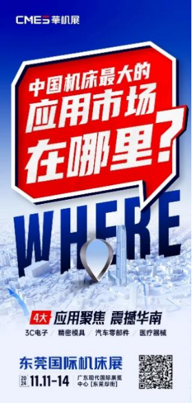 CMES华机展 | 东莞国际机床展将于2024年11月11-14日在广东现代国际展览中心(东莞厚街)如期开演,以130000㎡展览规模、1500+展商、20+专业论坛等空前盛况,多面覆盖金属切削机床、钣金及冲压设备、激光加工设备、数控机床核心功能技术、工业零件及磨削工量具六大展览范围,多方位展示工业母机上下游生态链,打造一个集展示、交易、创新于一体的中国机床采购节,助力3C电子、精密模具、汽车零部件、医疗器械加速出海。