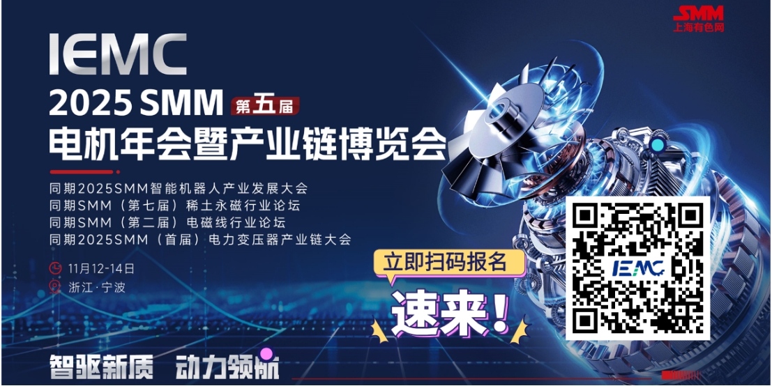 随着各国对碳排放目标的重视,电机行业面临着技术创新和产业升级的迫切需求。为进一步促进电机产业的发展,上海有色网信息科技股份有限公司将于2025年11月12-14日在浙江·宁波举办“IEMC 2025 SMM(第五届)电机年会暨产业链博览会”,由青岛市电机产业协会、湖州市电器工业商会和东莞市磁性材料行业协会协办。