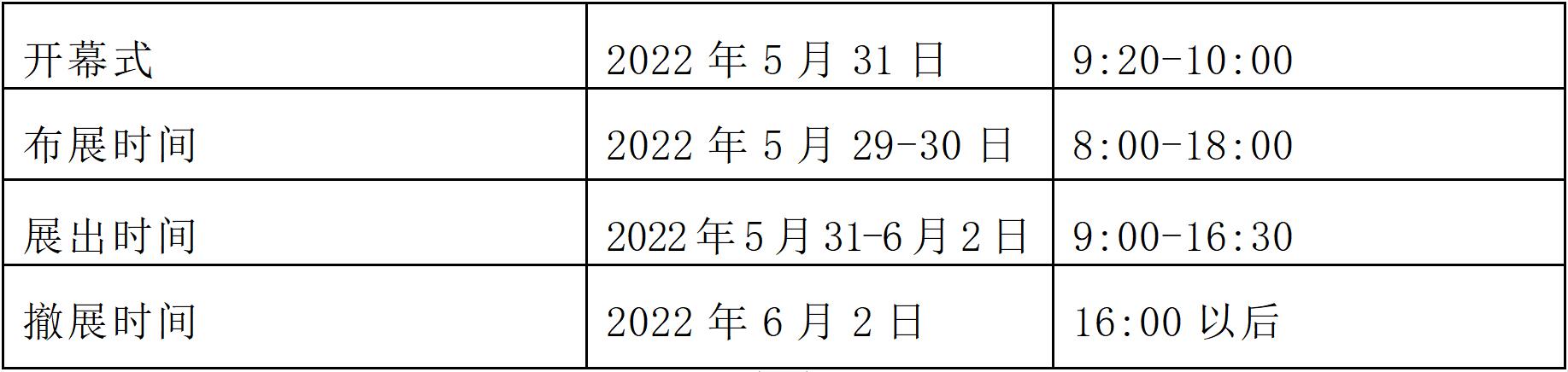 展出时间 2022年 6月1-6月3日 9:00-16:30