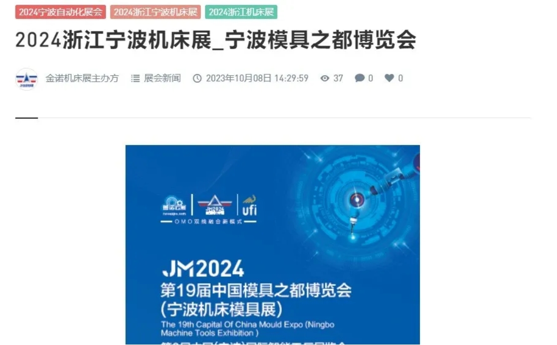 JM2024第19届中国模具之都博览会(宁波机床模具展)将于2024年5月23日-26日在宁波国际会展中心举办,同期举办中国(宁波)国际工业智能与自动化、动力传动展览会。