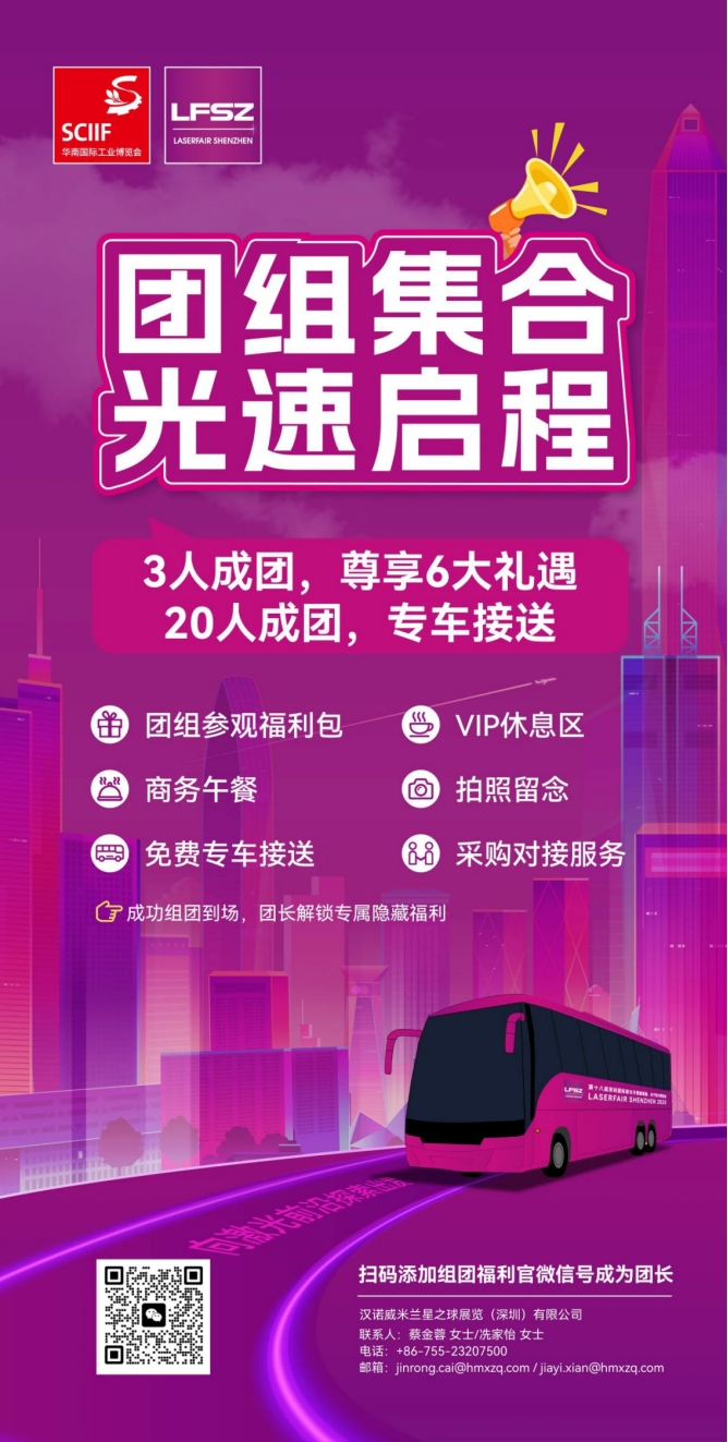 为回馈广大观众长期以来的支持,2025深圳激光展精心筹备了专属福利。在2025年6月2日18:00前完成预登记,您就能在展会现场领取咖啡券、地铁票,还有一份神秘礼物。不仅如此,预登记组团还有额外惊喜:邀请3人,团长可获LED护眼台灯;邀请5人,能得定制雨伞;邀请10人,更有定制背包奉上。若组团人数达到20人,团队将尊享六大福利,包括参观福利包、商务午餐、免费专车接送、专属观众休息区、团体拍照留念,以及采购对接服务。别再犹豫,立即预登记,率先开启这场充满惊喜与机遇的激光行业精彩之旅!